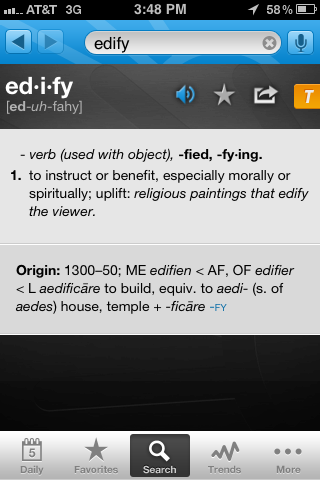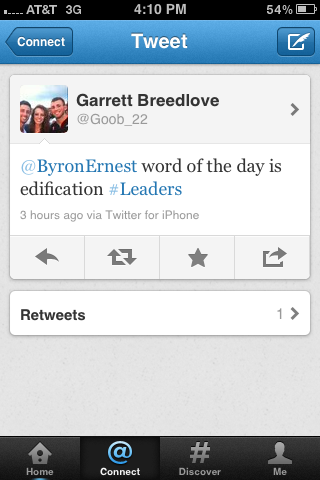 Today, as is the case most days, one of my students has provided the teaching and I am obliged to do the learning. Garrett Breedlove (@Goob_22 on Twitter) tweeted me that the word of the day was “Edification.” You may recall that Garrett was the facilitator of learning for one of my blog posts last fall. To read that post (Attitude Is Like A Cold) again click here. Now I have to admit, I didn’t even know what “Edification” meant. So off to my Dictionary App I went, and guess what the definition was? “1. The act of edifying.” I hate it when that happens! So, I looked up “Edify.” That’s when the learning began. Here’s what it said: “To instruct or benefit.” Now, that’s good stuff!