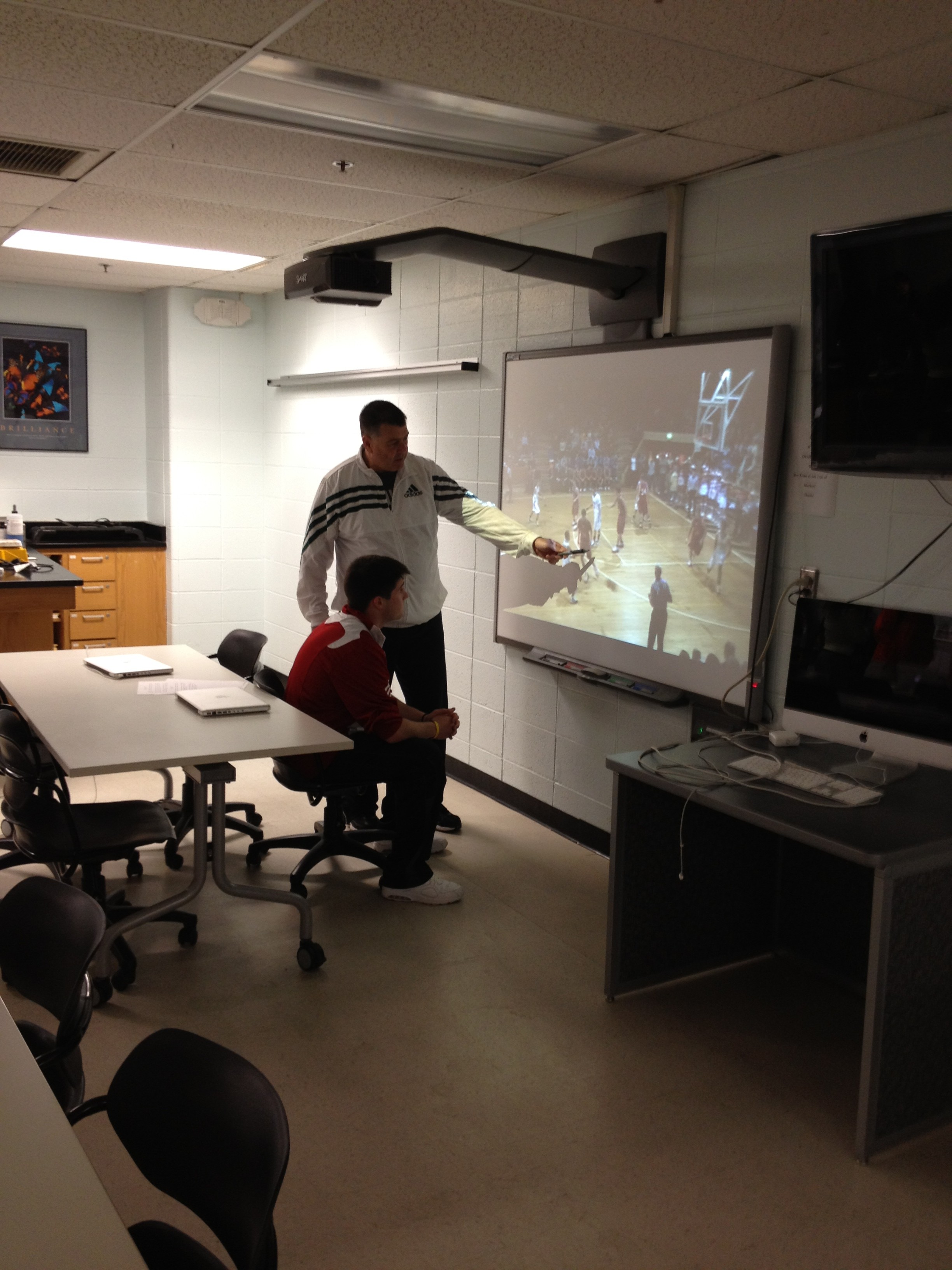 Christensen et al. (2011) discussed how our educational system is monolithic and needs to be more student-centric. By monolithic the authors mean we teach to only one learning style. Student centric means teaching to the way a student learns. Coach Hendrix teaches is a student-centric manner. By using the SWELL Classroom he is able to split the team up according to, not only different line-ups, but also the players’ knowledge of the game. Additionally, for those that are more spatial learners (need to see or visual) than kinesthetic, the triangulated SMART Boards give Coach Hendrix the ability to show players what they need to be doing.