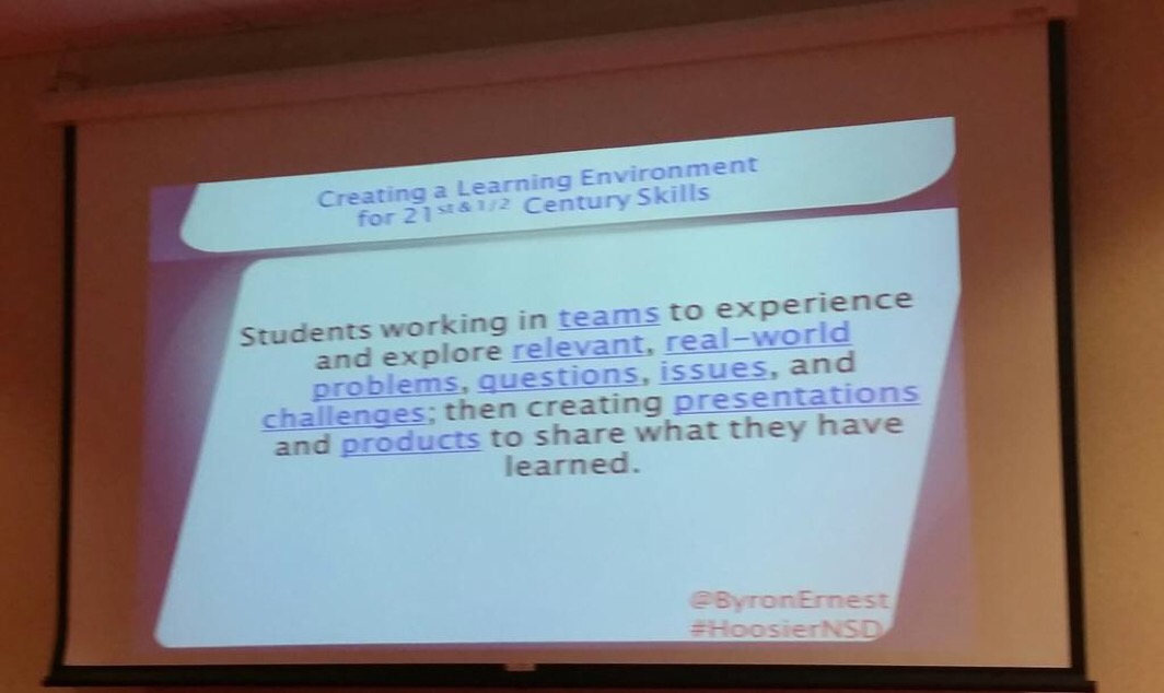 As always, I am using my blog as a way to reflect on the day. For this post I am going to bullet point the top tweets that were done during the day using the hashtag #HoosierNSD. The tweets were great and so was the learning. Also, I have attached the powerpoint that I used to guide my introductory kickoff session to the day. Here is the link for the powerpoint: Ernest_NSD_k12_2014