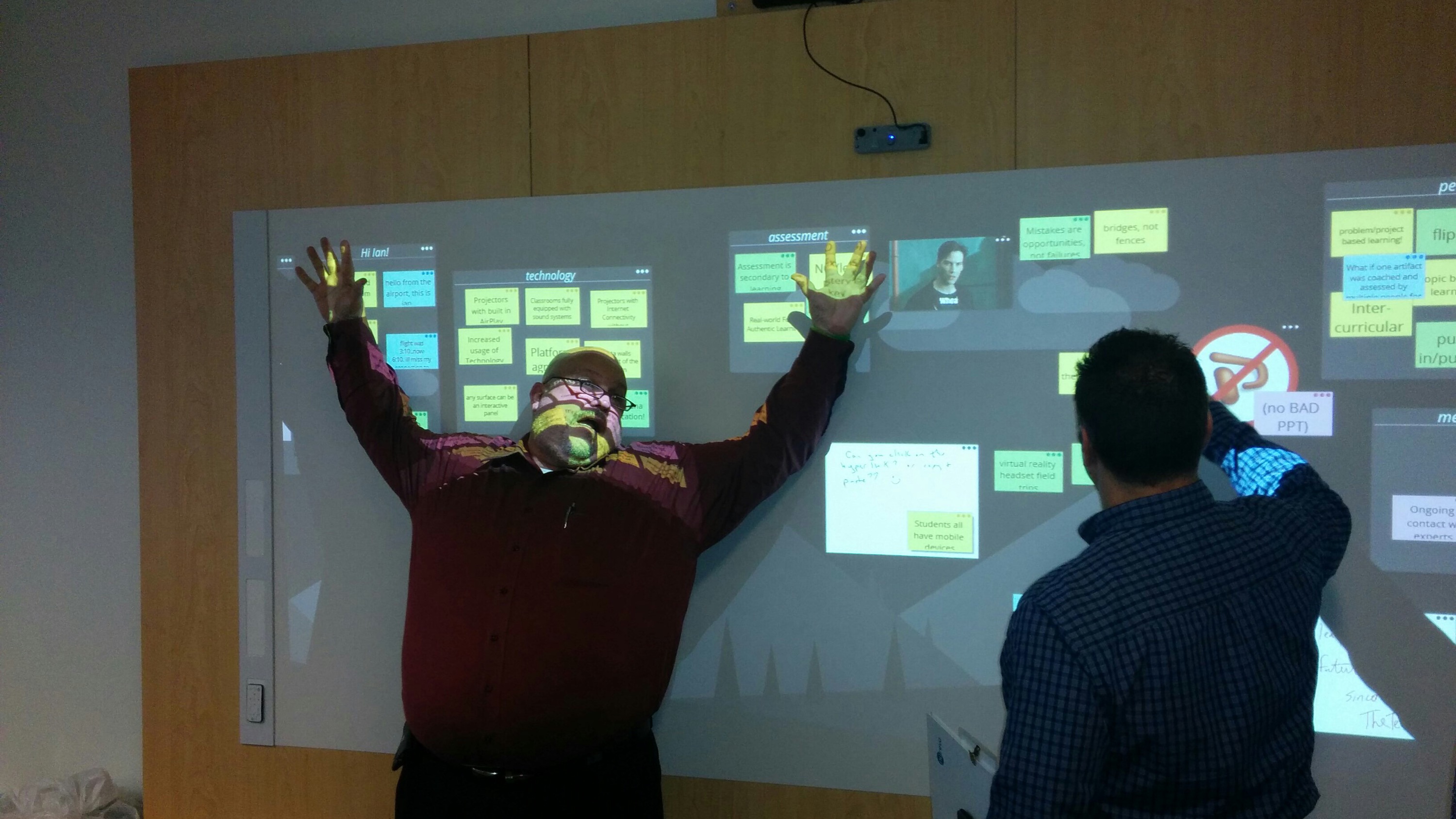 Additionally, up to 10 individuals can be manipulating content, partaking in ideation, on the projected image, or canvas as its called in SPAN™, on the wall. You have virtual post it notes available. You can write. You can add pictures. And… You can move content by throwing it from one end to the other like we see them do on NCIS Las Angeles. You guessed it, I was sold on the power of this tool immediately! SPAN™ was originally developed as a collaborative tool for business, but the team at Nureva, Inc. very quickly realized the potential for education. Thus, why we were there.