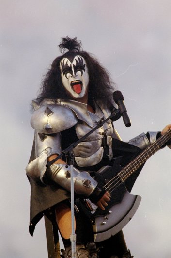 31 Jan 1999: Gene Simmons of KISS performing during the pre-game special of the Super Bowl XXXIII Game between the Denver Broncos and the Atlanta Falcons at the Pro Player Stadium in Miami, Florida. The Broncos defeated the Falcons 34-19.