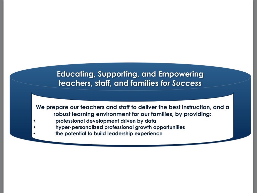HOW can your leadership be both spread and focused? This is a critical tension faced by many companies with multiple operations. One of the keys to putting strategy into action is to have everyone in the organization understand her role in carrying out the goal. I believe this is the first step to extending our leadership reach. So, as I look at my role of developing great teacher leaders it is important for me to define and organize high-impact teacher-leader roles that can allow great teachers to have a far greater effect on vastly more students, teaching peers, and the culture of excellence we are building for the organization. State and district education leaders must ensure that schools have the support they need to design and implement high-impact teacher-leader roles.