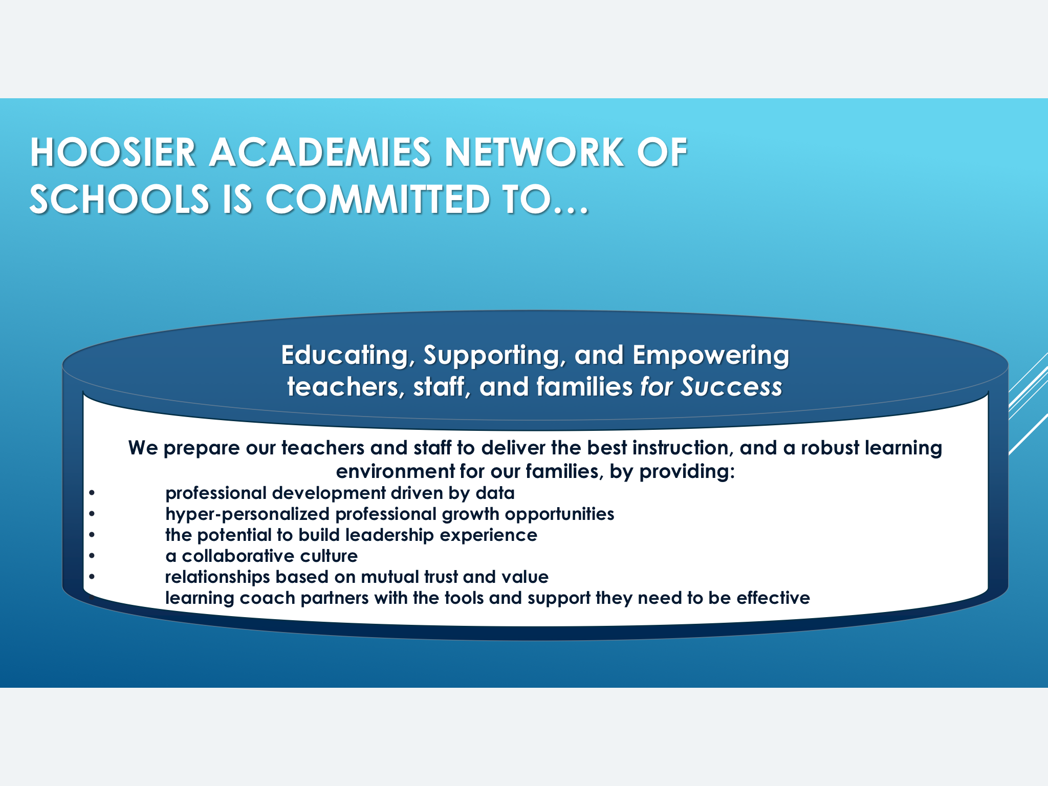 Last night we honored our Outstanding Learning Coaches (parents and family members who work with our students in an online environment) of the Year as nominated by our teachers. It was an honor for me to be there and speak with these great parents and give them a COW (Creator of Wow) Award in addition to the Outstanding Learning Coach Award. I told these parents that with our new vision of “Success for Every Student in Indiana” that we must continue to improve our family engagement. Learning Coaches are a crucial component to the family engagement at Hoosier Academies Network of Schools. I am so proud of the work that our Community Engagement Coordinator, Rachael Borrelli does to engage our families and support our Learning Coaches. She and the teachers are to be commended for implementing this Outstanding Learning Coach awards program.