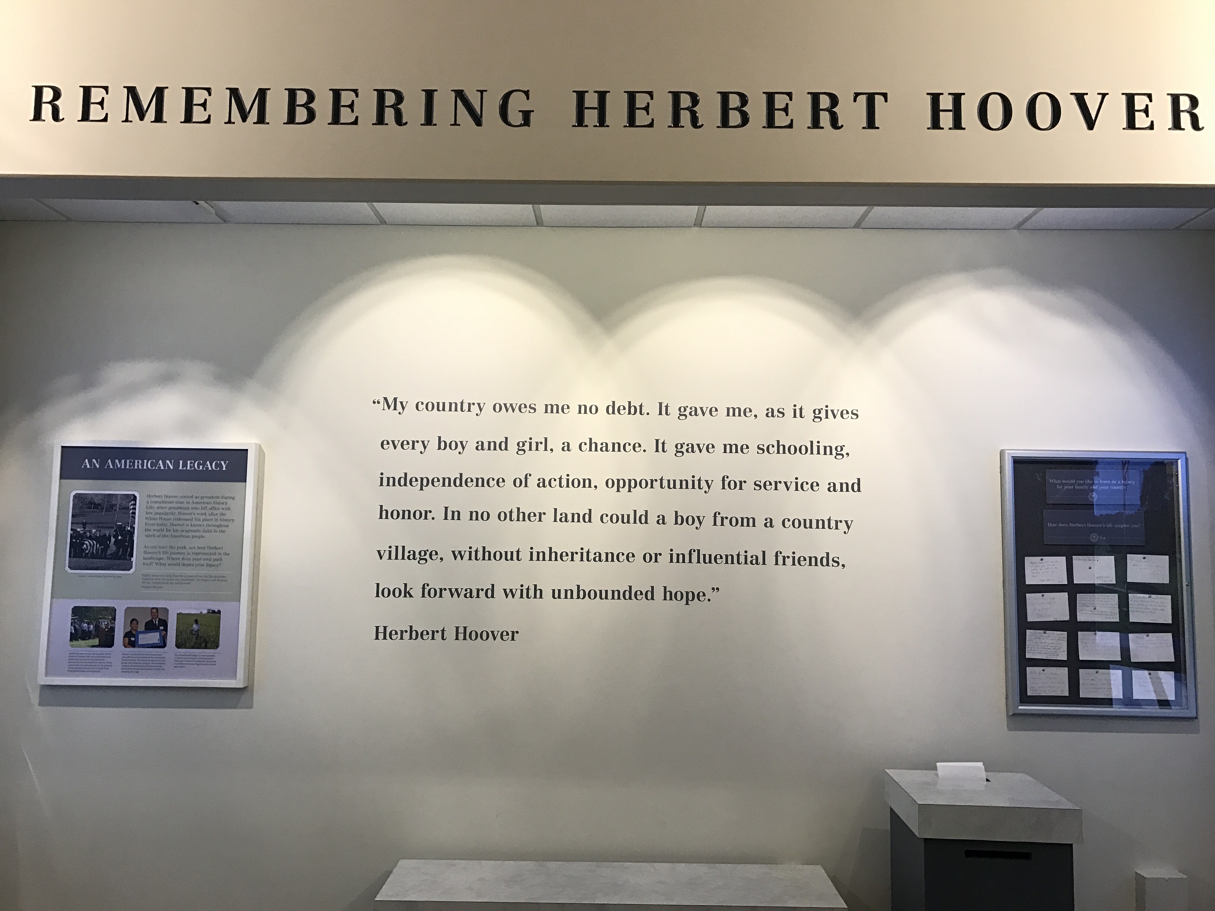 It also strikes me how Hoover did not make ideological differences personal. He always said to attack the problems and differences, not the person. We need to take this lesson and apply it to our world today. Especially in the field I am in of education. We always make differences so personal. We all want the same ends for our children; we just have different means by which to get there.