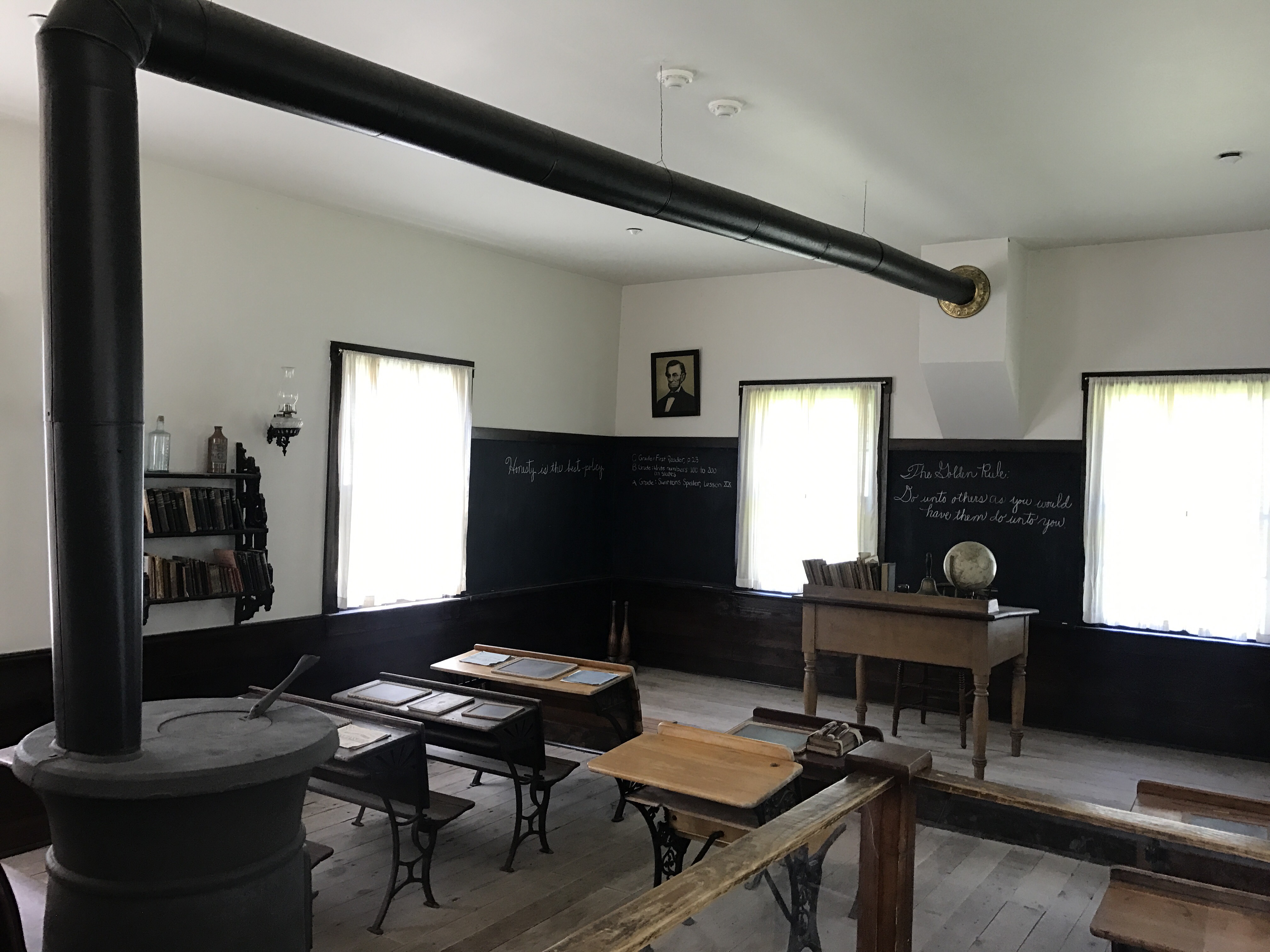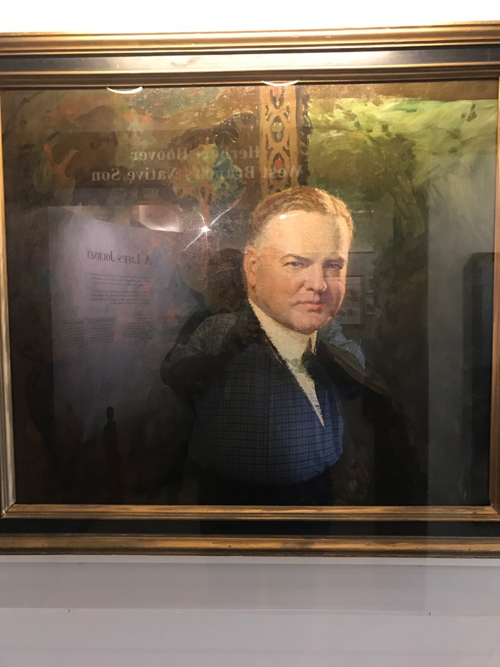 Today, my family and I had the privilege of visiting the Hoover Historic Site in his birthplace of West Branch, Iowa. The historic site is well done with the home Herbert Hoover was born in, his dad’s blacksmith shop, his one room schoolhouse, the Quaker Meeting House, and many other buildings set to the time of his birth on August 10, 1874. He was born in a two-room cottage and could have been any small town boy. Orphaned at age nine, he left West Branch, never to live here again.