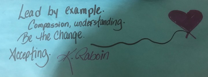 The Oxford Dictionary gives us the late 18th century origin of the word “mantra” as: “Sanskrit, literally ‘a thought, thought behind speech or action’, from man- ‘think’, related to mind.” We all have mantras. When working with groups of up and coming leaders I describe it as how others see us or how we see ourselves. Sometimes I even introduce it as what others say about us when we are not there. Yesterday in our 3D Leadership training for North and South Carolina we did a reflection exercise where participants got to do a graphic representation of their mantra and leadership legacy. I was blown away by the great work they did. Honestly, they speak for themselves, so I am going to post them all as the content of this post. Here they are, enjoy: