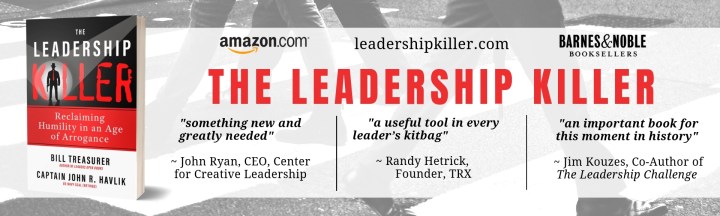 Bill Treasurer is the founder of Giant Leap Consulting and author of five books on courage and leadership, including the international bestseller, Courage Goes to Work. His latest book The Leadership Killer is co-authored with CAPT John “Coach” Havlik, U.S. Navy SEAL (Retired).