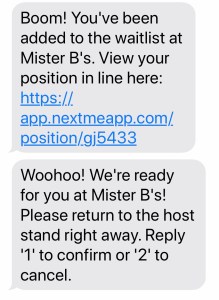 “Boom! Hang on tight! Oooooh so close! Woohoo! And… Go Enjoy your time!” were all descriptors I was receiving on my phone last night in Murray, Kentucky. We were at Mister B’s Pizza and Wings. Because of the need for physical distancing this great restaurant has an app that tells you where you are in the seating process. Once we gave them our number, a text was sent with a link to our personalized app. It gives you how many parties are ahead of you and an approximate time for seating. Genius, right? It also gave us the menu so we could be thinking about that.