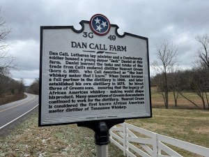 So having been inspired by all this, I decided to spend this weekend retracing some of Nearest Green’s steps. Yesterday morning I took a road farm trip out into the countryside outside Lynchburg, Tennessee and found the Dan Call Farm where Green was an enslaved whiskey distiller. It was here that Uncle Nearest taught Jack Daniel the trade and was his first master distiller. Check out the photo of the historic marker Weaver had placed at the farm after purchasing it. It is a beautiful place and it was very moving to be standing there.
