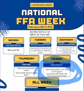 This past week I had the opportunity to be in Langford, South Dakota for National FFA Week. The Langford Area School District FFA Officers had the great idea to provide a leadership workshop sessions designed for every grade level in the school. There amazing agriculture teacher/FFA advisor and National FFA Teacher Ambassador, AnnaMarie Sachs, made the students’ idea a reality. I’m also very proud that the students requested that I be the provider of all these sessions. I had had the opportunity to work with some of the Langford FFA members at National FFA Convention, so they had experienced my work.