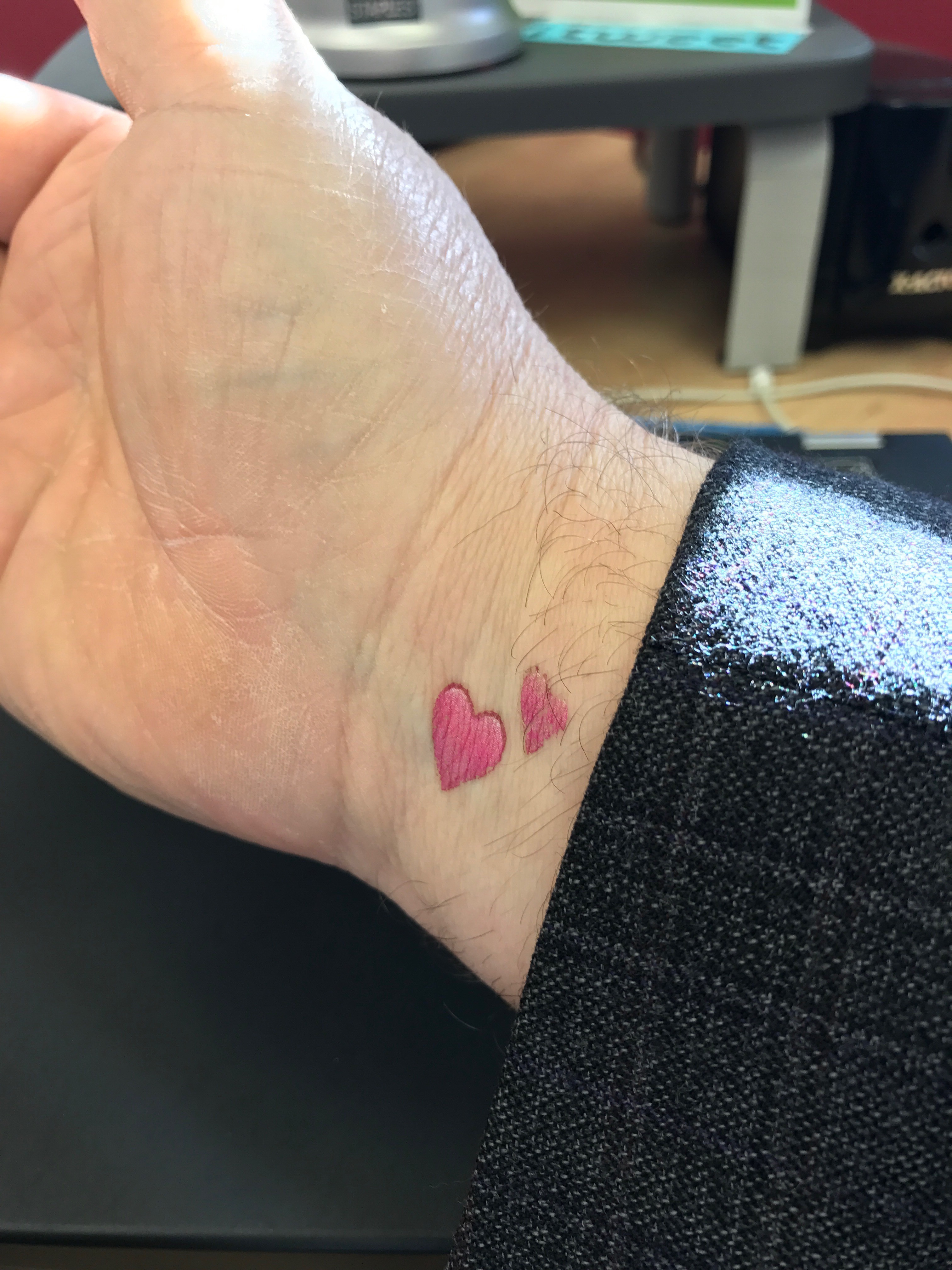 Now, here we are almost a week later and my temporary tattoo looks just as good as on the day I applied it. At first I got a little concerned, but I have gotten used to it and actually really like it. I keep getting questions about it. Questions like the one at the state board of education meeting this week, “Byron, do you really have a tattoo of two pink hearts on your wrist?” These questions give me the chance to say “Why yes. Let me tell you why and about the journey our teacher leaders are taking through our Focused Leader Academy.”