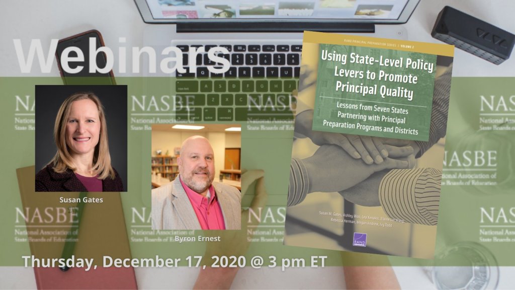 Yesterday I had the opportunity to be part of a great National Association of State Boards of Education (NASBE) webinar where Susan M. Gates presented findings from research conducted by RAND Corporation. Click this recording link to view the recording of the webinar entitled Using State-Level Policy Levers to Promote Principal Quality. I was honored at the end of Susan’s presentation of the findings to, along with NASBE’s President and CEO Robert Hull, provide some thoughts, observations, and feedback.