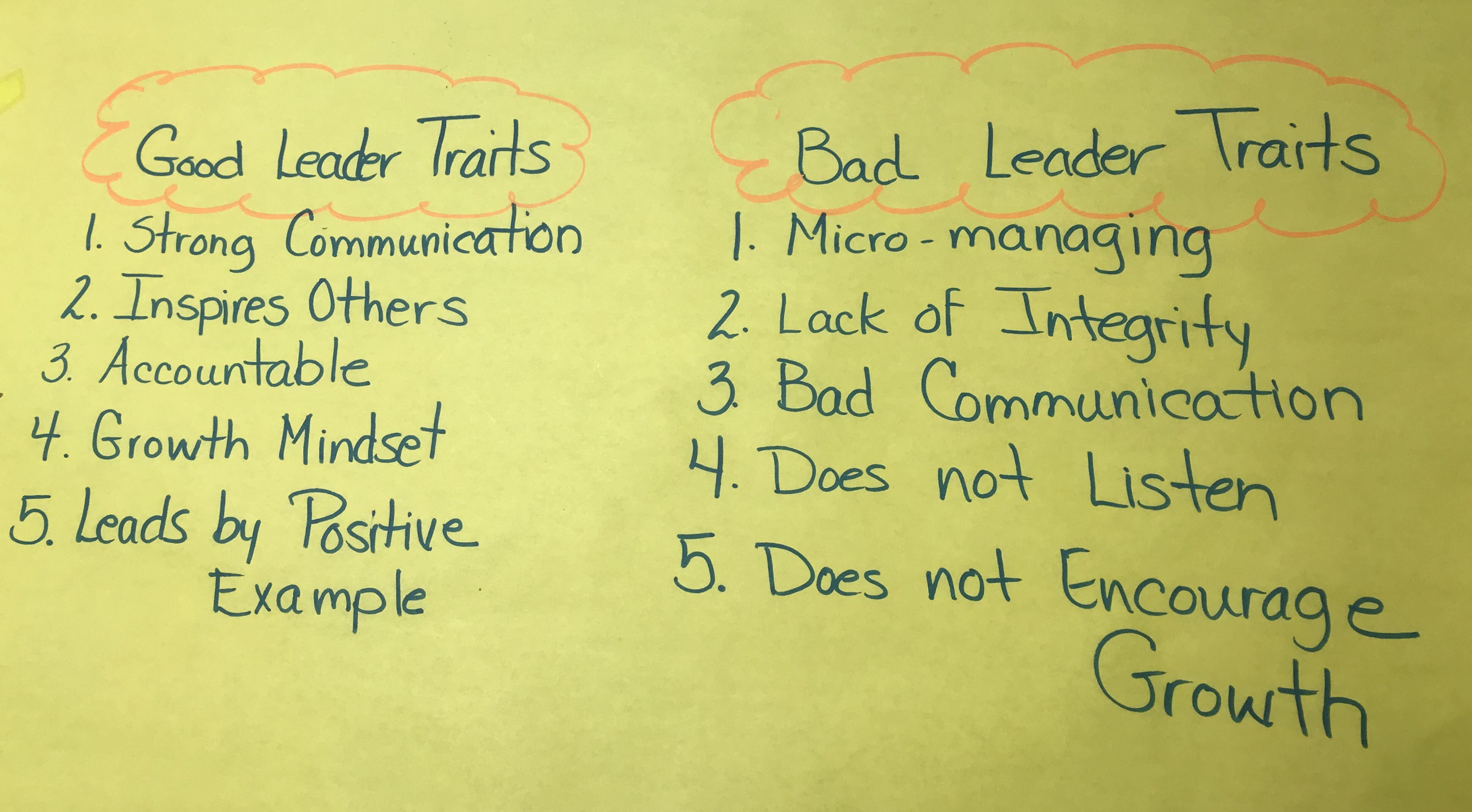 Most team members truly try to be honest and try to make the environment a better place. Leadership, conversely, that is inexperienced or questionable results in bad decisions. These leaders then try to manufacture a culture that is contrary to that of the larger organizational community. This leadership lacks tactical and long term strategic vision. Ultimately, this results in a disconnect of culture/morale. Check out this list of top five good leader traits that would lead to an organic culture and top five bad leader traits developed by the participants tonight that would contribute to a manufactured culture: